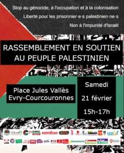 Rassemblement en soutien au peuple palestinien : samedi 21 février à 15h, place Jules Vallès à Evry-Courcouronnes